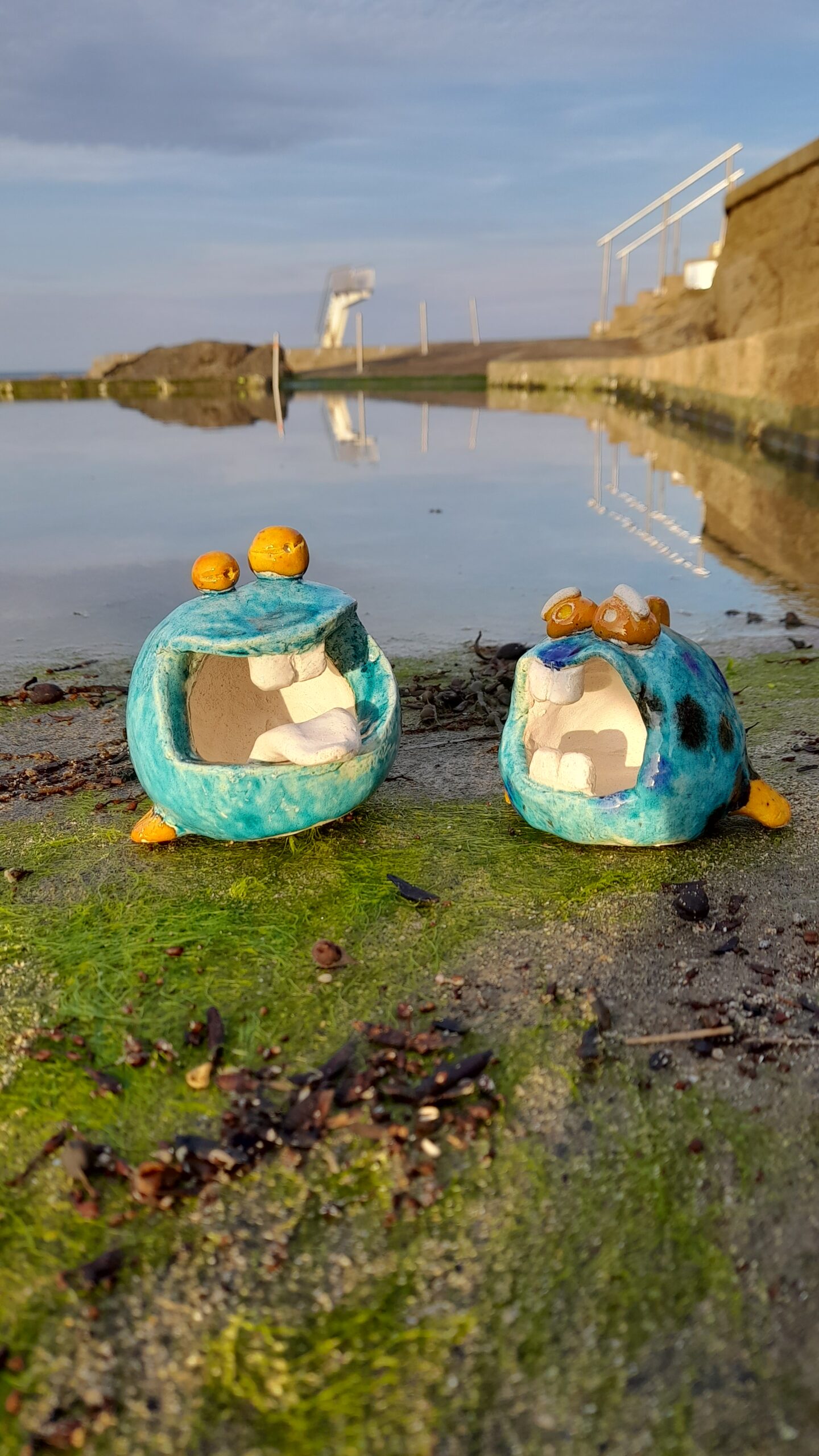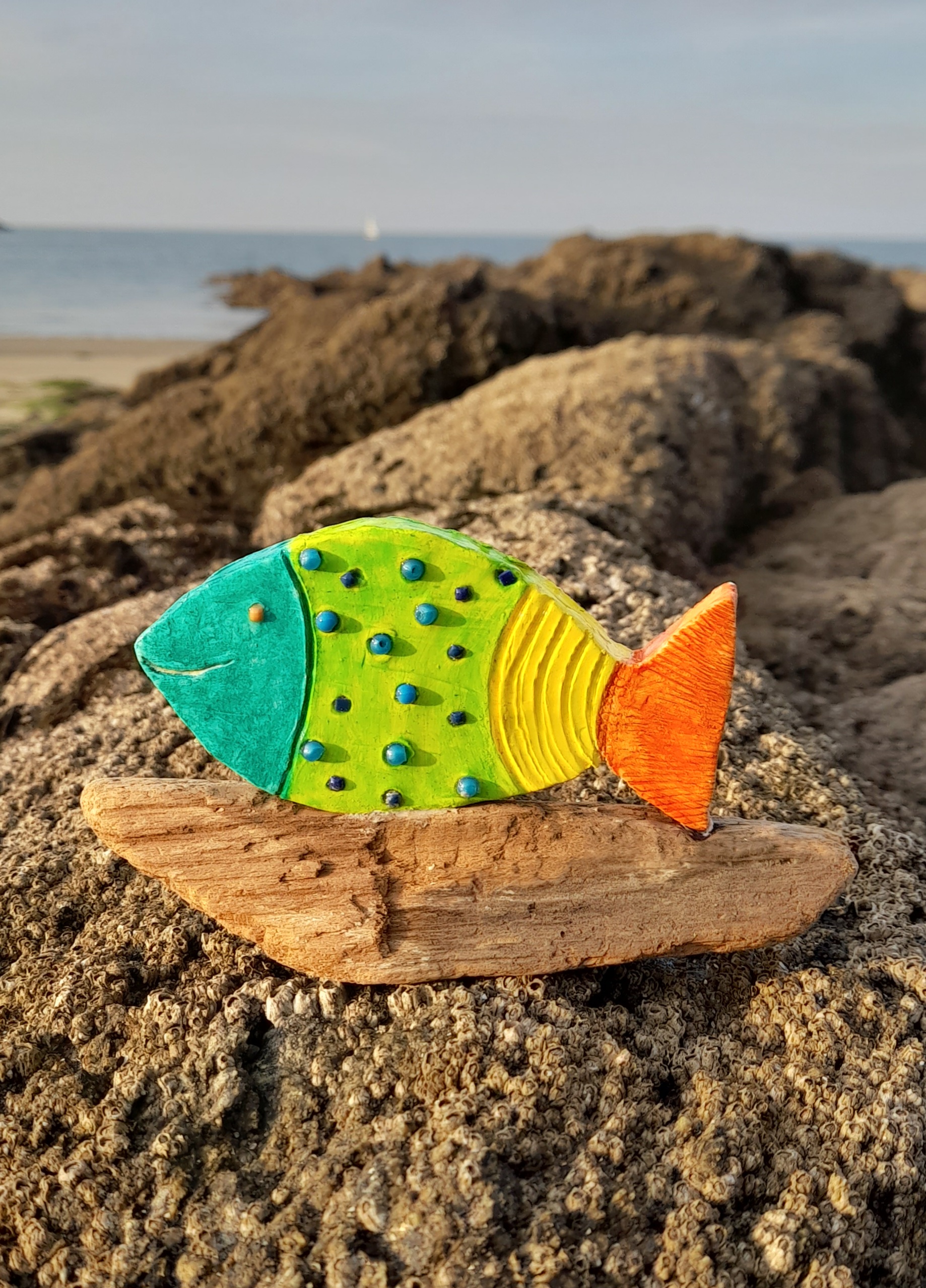 Avec la terre le processus de création est un peu différent. Ce ne sont pas les gouges qui façonnent mais les mains. Le contact direct avec la matière et son modelage permettent une diversité et des possibilités multiples de réalisations. Après la cuisson vient la mise en couleur avec l’émail ; cette partie de travail demande précision et concentration. Mes céramiques ne sont pas toutes émaillées, vous trouverez des pièces avec de l’engobe, du jus d’oxyde ou de l’acrylique vernie. Comme pour le bois il y a des réalisations ludiques, décoratives et parfois utiles.
